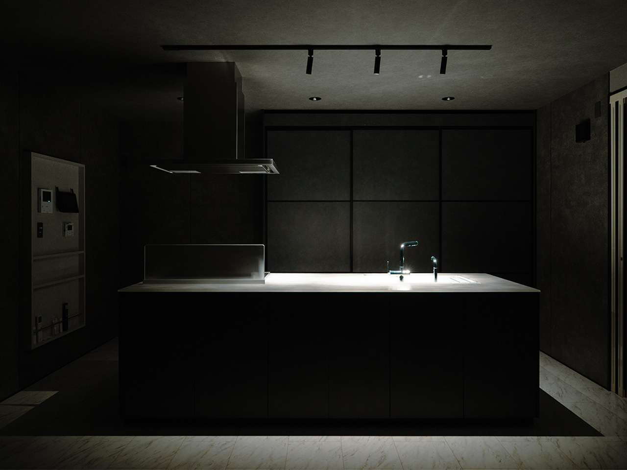 特にリビング空間は、照明計画から細かなディテールに至るまで丁寧にデザインし、心地よさと美しさを兼ね備えた空間に仕上げています。
